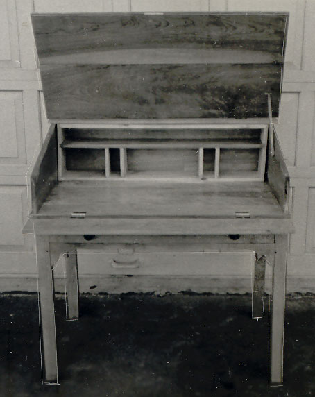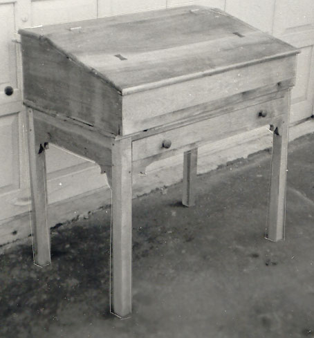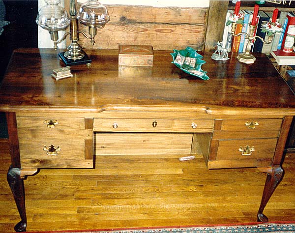 Far more elegant is, shown below, a Queen Anne walnut desk was a project made by Stanley and one of his apprentices, Bill "Charlie" Troutman.